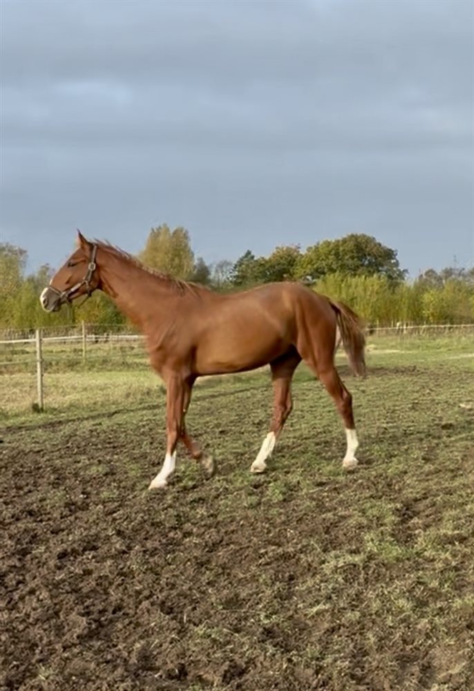 4 års DV vallak med stort potentiale. Han har været meget overbygget og har ikke været færdig til longering og tilridning og er derfor rå. Prisen er sat derefter. Han er født ind i springhesteprogrammet og mor har gået international springning. Mormor er elitehoppe bl.a. baseret på afkoms præstationer. Er meget kontaktsøgende. Har ikke været læsset i trailer. Der er fuld røntgen og der er blevet fundet en MIKROSKOPISK mus, som ifølge 2 dyrlæger (bl.a. professor på KVL) IKKE skal fjernes. Han har en særdeles god bevægelse. På videoen er det 3. gang han løsspringer. Højde 1 m.