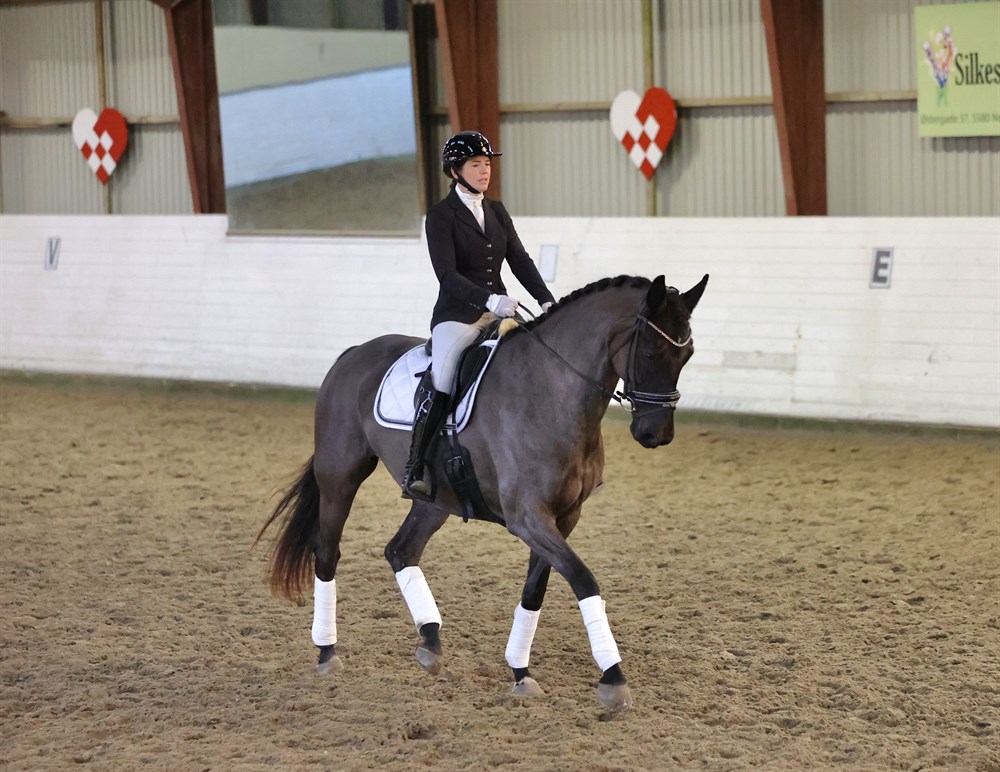 Desværre har hun fået en skade i nakken som gør hun ikke kommer længere i dressur. Hun fungere fint på nuværende tidspunkt på la2 niveau, hun sælges derfor kun til en rytter der ønsker en god ridehest til lidt klubstævner, eller at have en god ridehest derhjemme uden de vilde ambitioner.