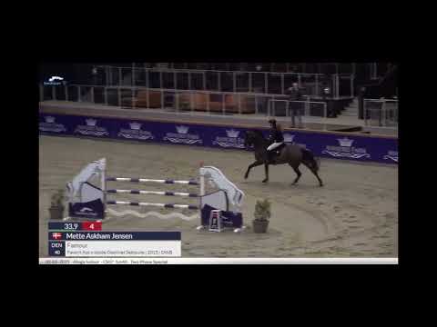 Famour er en dejlig frisk hoppe på 10 år, som har stor kapicitet og er klar til at prøve kræfter med 145 klasser.