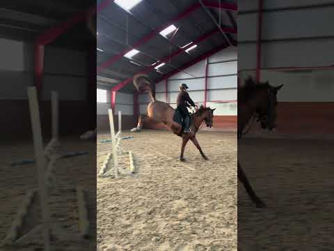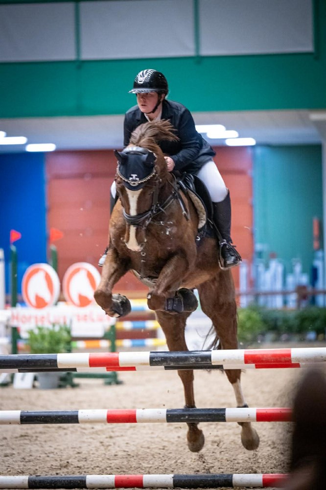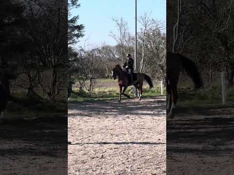 Har sprunget LC til stævner og op til 110 cm derhjemme. Han trækker godt hen til springene og kan godt få et ekstra gear.