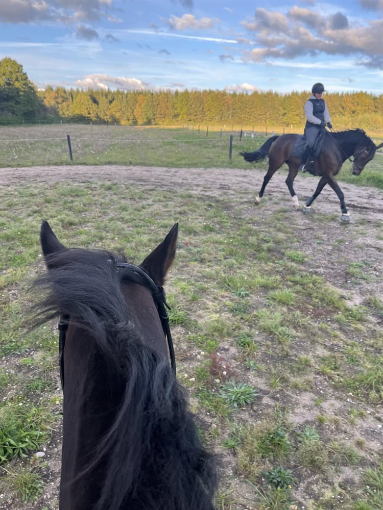 Stampe er så småt blevet sat i gang igen af min mor og en veninde, som han kender godt i forvejen, så det er ikke nyt for ham, at de rider på ham. Det er dog vigtigt for mig at sige, at han lige skal i gang igen, men jeg er sikker på, at man kan nå langt med ham, da han har et kæmpe potentiale.