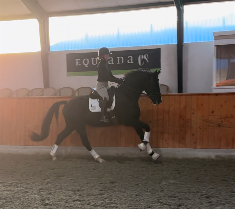 Monty er en harmonisk og ridelig 5-årig vallak med topmoderne dressurafstamning efter Blue Hors Monte Carlo og morfar Sezuan.