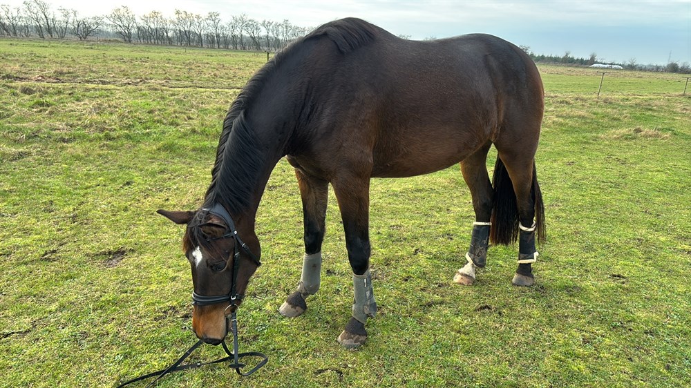 Storrammet og velgående hoppe med topafstamning. Særligt skal hendes galop fremhæves.