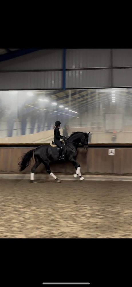 Han er påbegynt høyere øvelser og viser god evne til både piaffe, passage og gallopppiruetter. Han er helt utrulig ridbar og lett. Men er en stor hest som trenger mer styrke ennå.