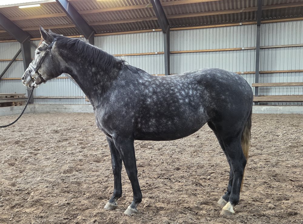 Solvej som vi kalder hende, er en smuk 6-årig hoppe med rigtig gode og rummelige gangarter. Hun er en sensibel hest og derfor også en enmadshest som knytter sig meget til sin ejer, men har man vundet hendes tillid er hun den sødeste hest.