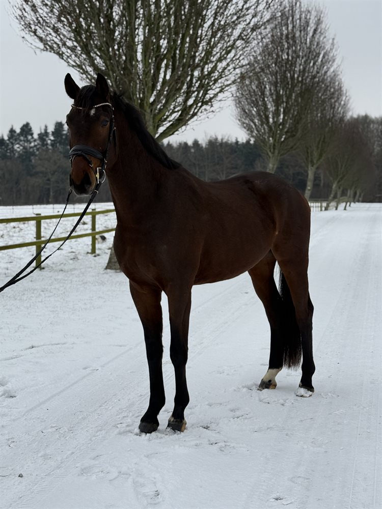 Strandagergårds Fineshot er en hest med stor kvalitet, god op ad bakke tendens i galop og generelt store, rummelige gangarter. Han er redet 3-4 måneder, hvor han har vist at han er lærenem og altid gør sit bedste.