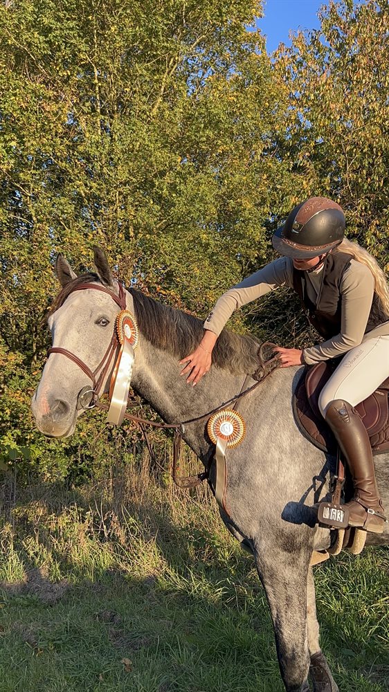 Limit er en skøn 7-års vallak på hele 179 cm – den største, men uden tvivl også den sødeste i stalden. En ægte gentleman med et fantastisk sind og en stor arbejdsglæde. Han er en alsidig hest, der kan det hele: dressur, spring, tur, terræn, jagt. Som 5-års gik han fejlfrit 120 cm, og siden jeg startede på studie, har han primært gået LB-klasser, da vi har haft fokus på hygge. Limit er en hest, der altid gør sit bedste, han stopper aldrig, tager hellere en bom og elsker arbejdet. Han springer alt, hvad du byder ham, hvad enten det er på banen, mur, vandgrav, terrænspring eller naturforhindringer, og på stævnebanen er han en stabil makker, hvor man altid kommer i mål.
