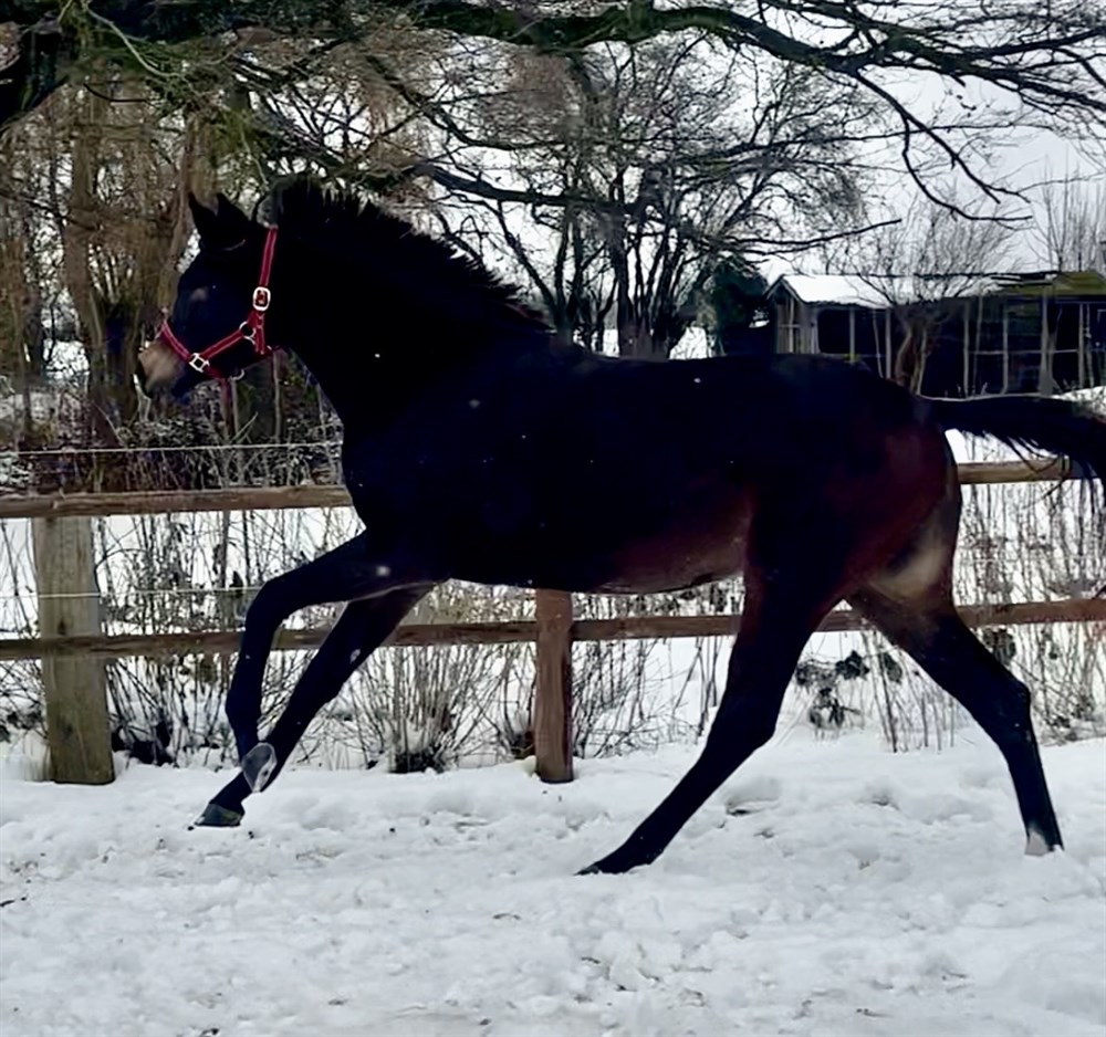 Smuk og helt vildt velgående hoppeplag på 2 år til fremtidens dressurbaner. Hun har 3 rigtig gode gangarter, masser af power og her kommer jeg attitude, samtidig med at hun har et kraftigt kønspræg med hendes feminine hoved og velproportionerede fine krop med meget lange ben. Mor og Mormor er begge er kåret i DH med 8 i helhed. Hun er meget social og elsker menneskelig kontakt.