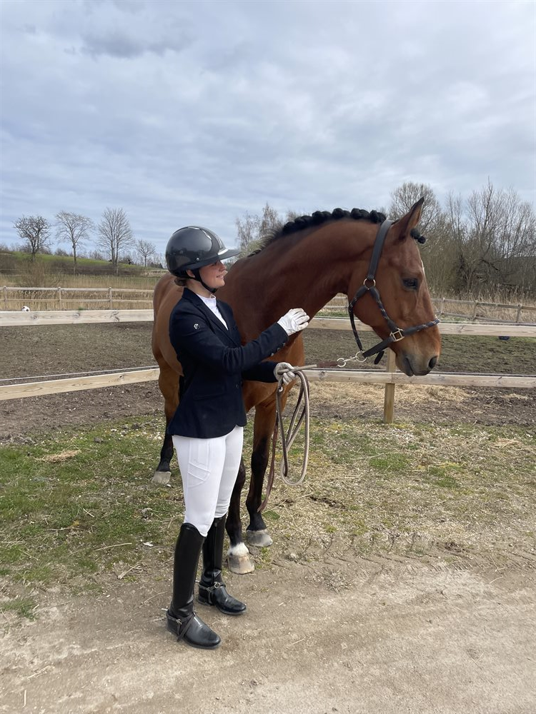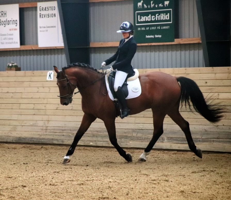 B-hest i dressur og sidste år Distriktsmester for hold med min datter. Jeg har ikke selv haft den store interesse for at starte stævner.