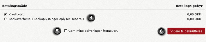 - Sæt et flueben her, hvis du ønsker, at hjemmesiden skal huske dine indtastninger i fakturaoplysningerne til næste gang du kommer ind på denne hjemmeside.