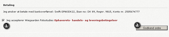 - Du kan ikke godkende din ordre før du har accepteret Wiegaardens Fotostudies Ophavsrets- handels- og leveringsbetingelser.