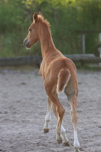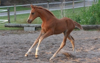 Feminint føl med super gangarter. Mormor Lovely e. Rubinstein / Akzent II ud af Love Story stammen.