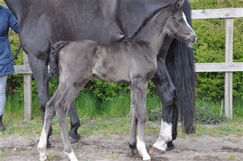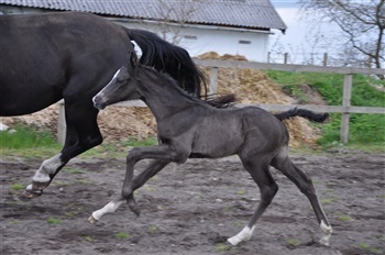 Tillidsfuldt,ædelt, højtstillet og udtryksfuldt sort hingsteføl.