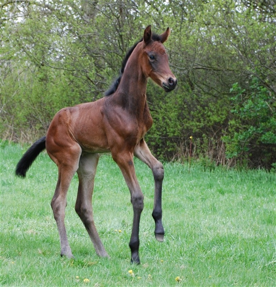 | Kommentar: | Højtstillet, ædelt og udtryksfuldt hoppeføl. Føllet er ud af en præstations- stærk hoppestamme. Billederne er taget, hvor føllet er 3 dage gammelt. |