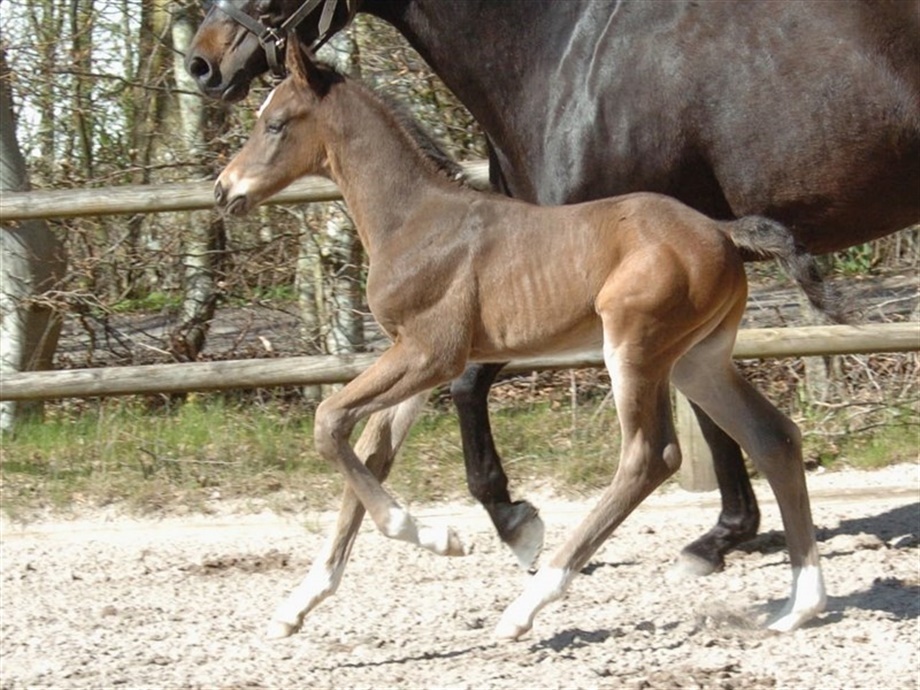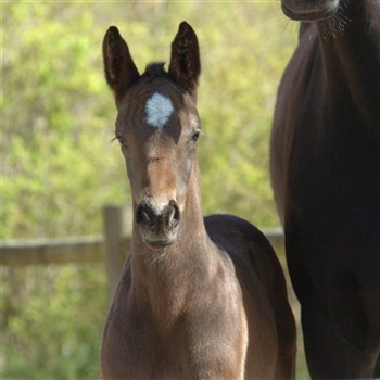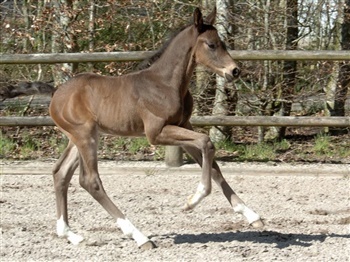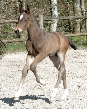 Maskulint hingsteføl med balanceret galop.Foto 10 dage gammel.