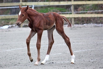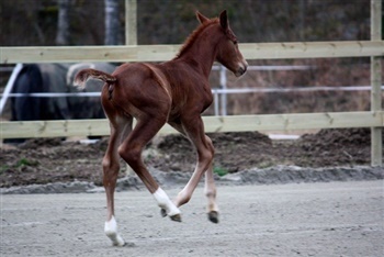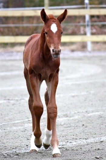 Stort hingsteføll. Føllets mamma Roshana M er mor til Royal Butterfly, kåret hingst i Norsk Varmblod.