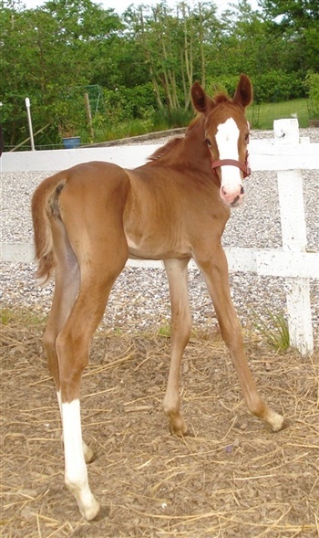 | Kommentar: | Særdeles velgående og udtryksfuldt hoppeføl. Højtstillet og ædel med særdeles gode gangarter, dejlig kontaktsøgende og tillidsfuld. |