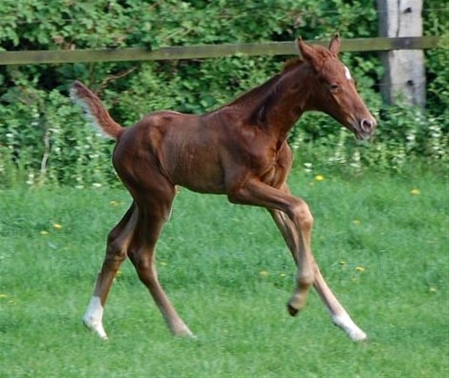 | Kommentar: | 1 dag gammelt hingsteføl e. Cellehingsten Dannebrog (ligeledes opdrættet af DMJ HORSES). Mor er søster til stempelhingsten Fidermarks samt Solieres mor. Soliere vandt sølv ved UVM i Verden og ved Bundeschampionatet. Læs mere på hjemmesiden. |
