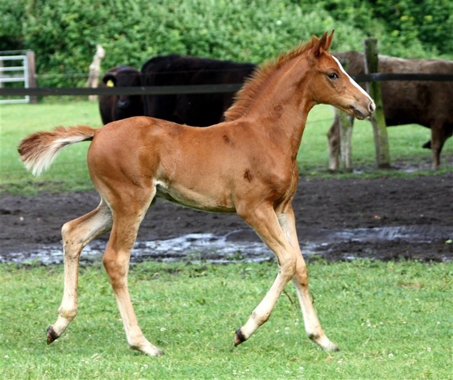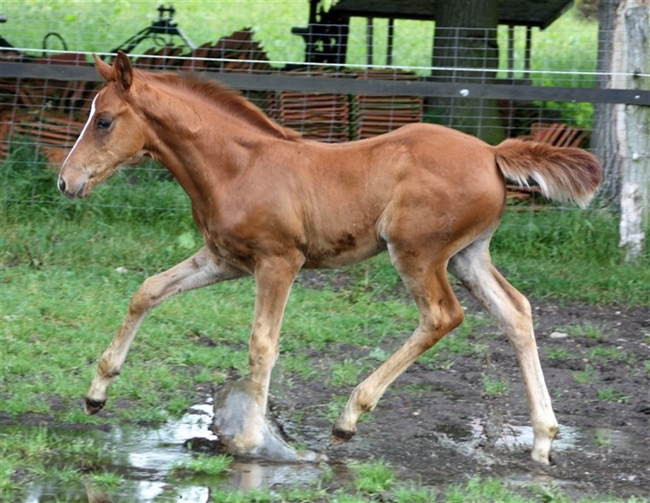 | Kommentar: | 7 uger gammelt hingsteføl. M, MM, MMM og MMMM er alle statspræmieret med 8 i helhed. MM blev bedste 2-, 3- og 4-års samt skuets bedste hoppe ved kåringerne i Tyskland. MMM er søster til Weserperle, som vandt guld ved EM. Læs mere på hjemmesiden. |