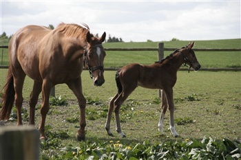 | Kommentar: | Hun er et skønt hoppeføl, med masser af udtryk, er tillidsfuldt og nysgerrig. Hun er solgt med en halv part per 1. juni til Lone Juhl. |