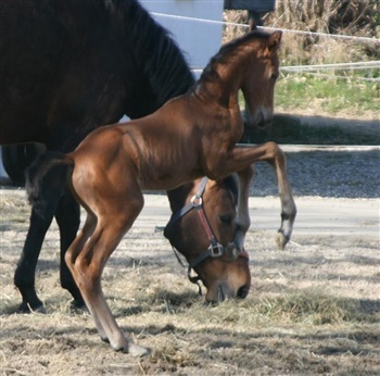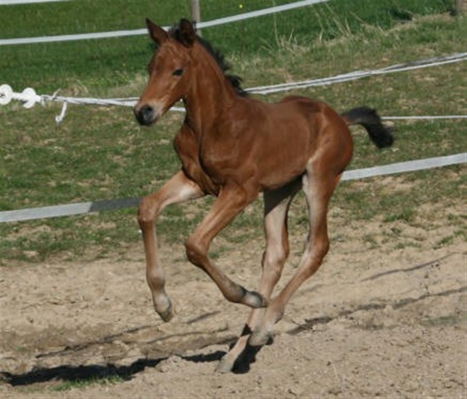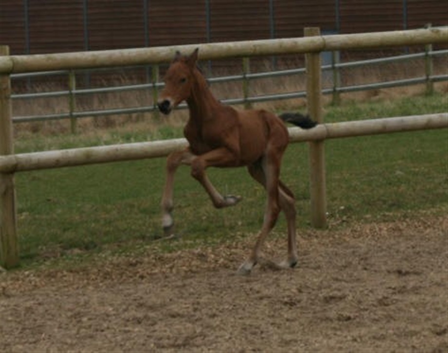 | Kommentar: | Energisk føl som vi er meget tilfredse med, ædelt, højtstillet og udtryksfuldt hingsteføl |