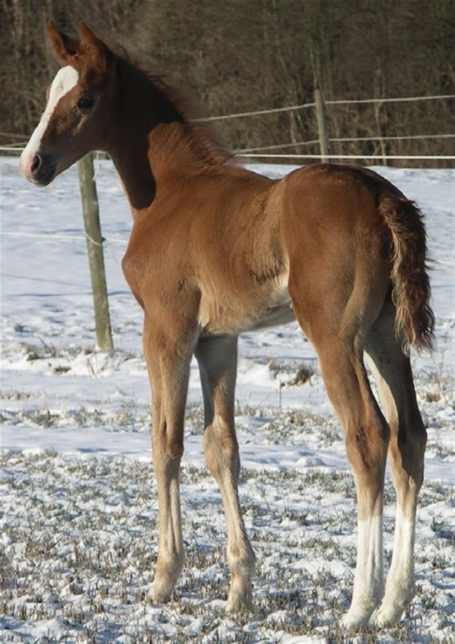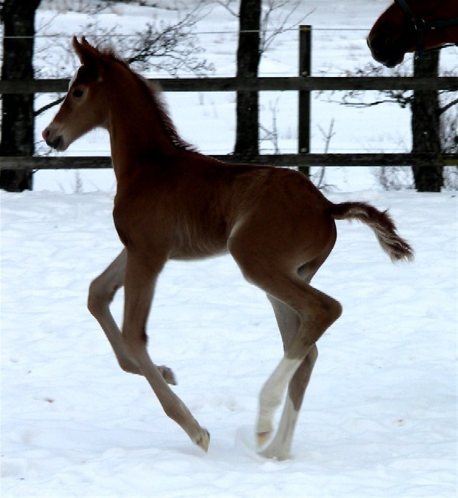 | Kommentar: | Meget velproportioneret, korrekt hingsteføl med gevaldig udstråling, særdeles gode gangarter, og et herligt kontaktsøgende temperament. Er til salg. |