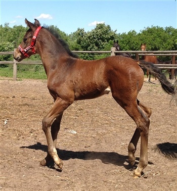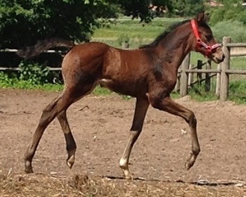 | Kommentar: | Ultra smukt og ædelt hoppeføl, med masser af elastik og her-kommer-jeg attitude. Hun er nysgerrig og et rigtigt nussehoved. |