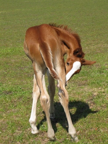 Dejlig langbenet hingste føl. Altid glad og fuld af fart.