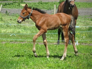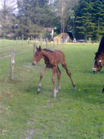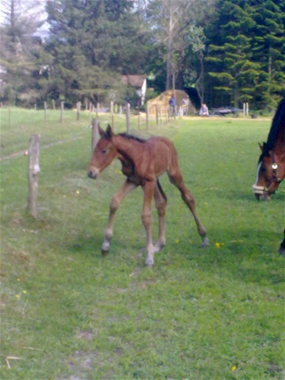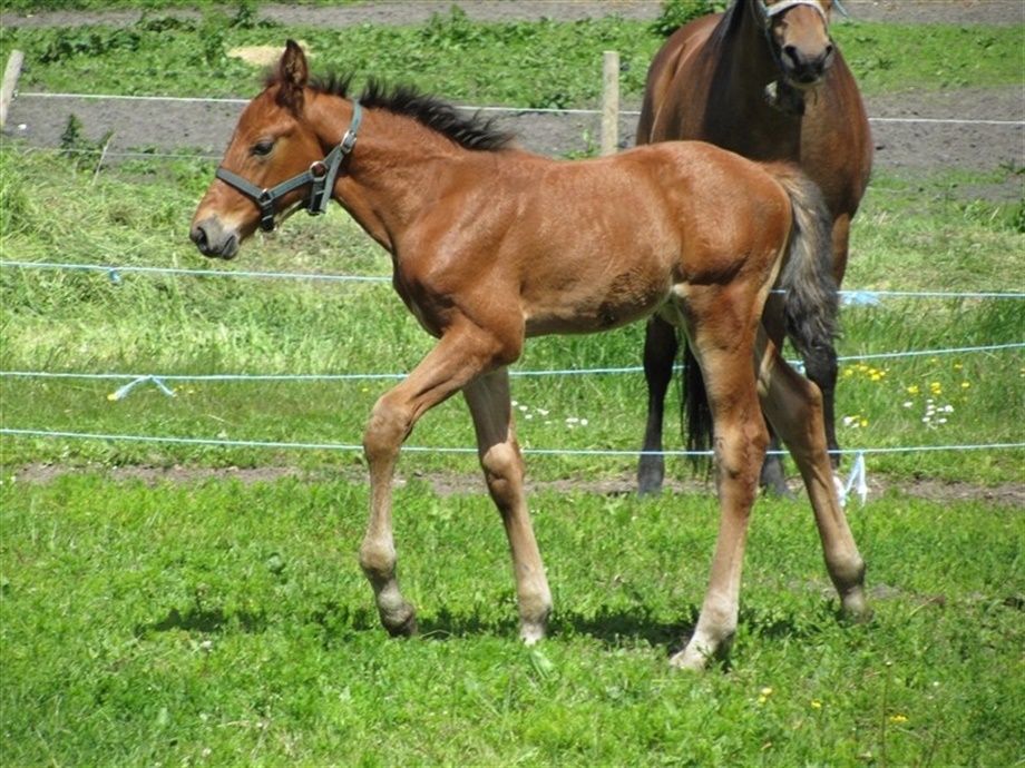 Højtstillet hingsteføl med masse af gå på mod