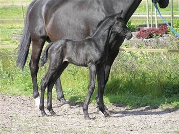 | Kommentar: | Yndigt og superfeminit kulsort hoppeføl på vores dejlige Elitehoppe Linett. Det er Linetts 14. føl! Hun er til salg. |