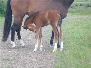 | Kommentar: | Lady Lykke er en rigtig dejlig hoppeføl, men med frække øjeblikke. Hun er lysbrun, har et stort blis og 4 hvide sokker.. |