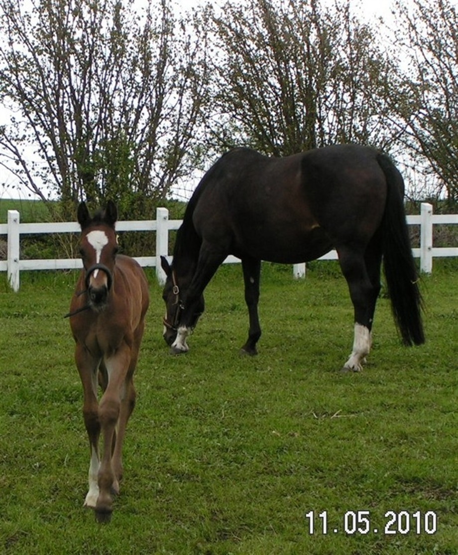 | Kommentar: | Hingsteføl født kl. 03.17 alt gik fint og moderen er meget stolt. Han er en skøn spillopmager :-) |