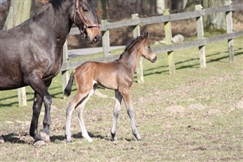 | Kommentar: | HER KOMMER JEG hingsteføl med masser af bevægelse og ædelhed -velrejst, langbenet og bare helt igennem dejlig!Bliver mørkebrun. |