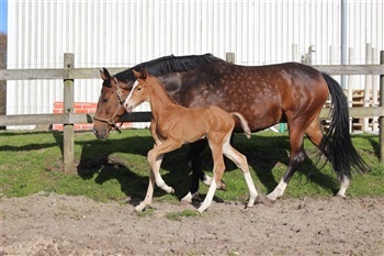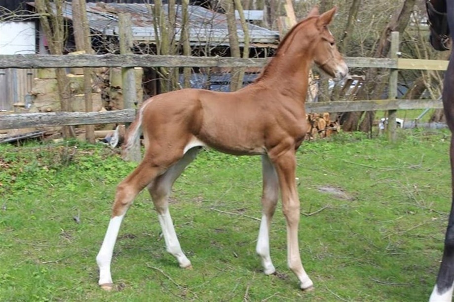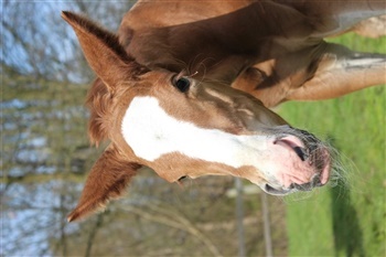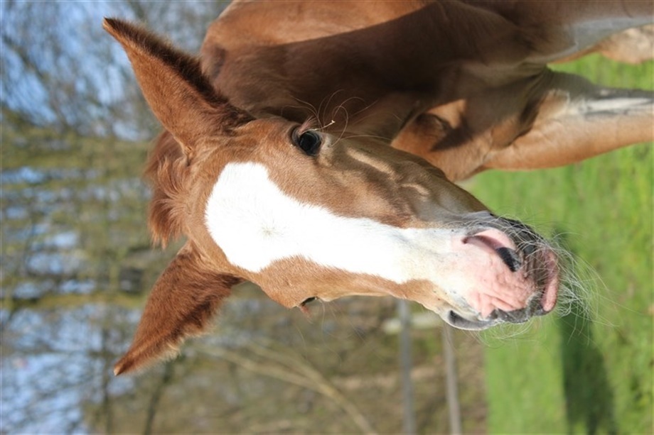 | Kommentar: | Hingsteføl med power og et frækt glimt i øjet. Langbenet og med masser af gåpåmod! 3 sokker- på det 4.ben har han en mørk plet.Spot on! |