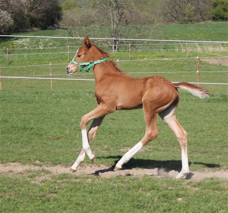 | Kommentar: | Super hingsteføl, som bevæger sig fantastisk. Mor DH fløj hoppe som har fået sølvmedalje i Tyskland. |