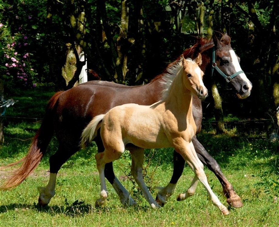 | Kommentar: | Føllet mistede sin mor , Elite cremello hoppen Legend Arabesque ved fødslen, har fået en fin Wesh ammemor - han er velrejst og velgående - |