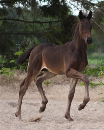 | Kommentar: | Sortbrunt langbenet hingsteføl med stort gangpotentiale. |
