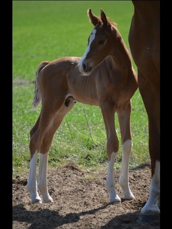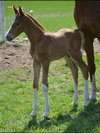 | Kommentar: | Super fint rødt hingste føl, med fire høje sokker og blis. En en nysgerrig fyr, som helt sikkert får nogle super gangarter! |