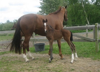 | Kommentar: | Føllet er til salg. Super afstamning med Elitehopper i 3 generationer. På billedet 5 dage gammel |