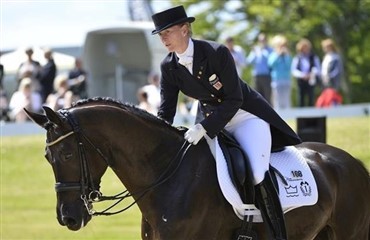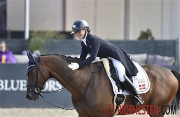 Succesen ville ingen ende tage i dag, og man må næsten konkludere, at Karoline er rigtig dygtig til at ride kür. Med Atterupgaards Kawasaki e. Krack C/ Stedinger (opdr. Atterupgaard) rider hun sit sidste internationale juniorstævne, og det er gået strygende. I fredags blev det til en flot sejr i den indledende klasse, og igen i dag kunne Karoline stille sig øverst på podiet med en score på 74,709% i juniorernes kür og godt 3% ned til andenpladsen.