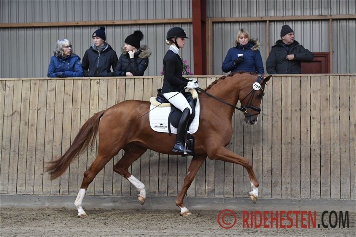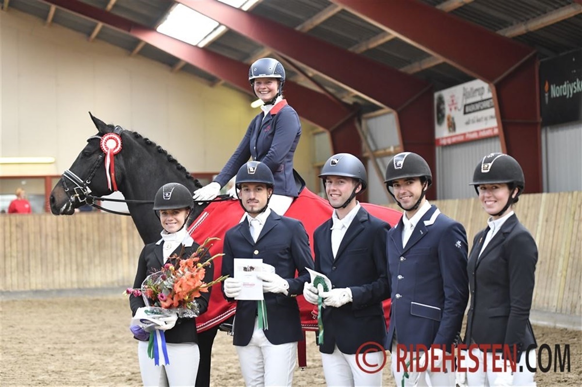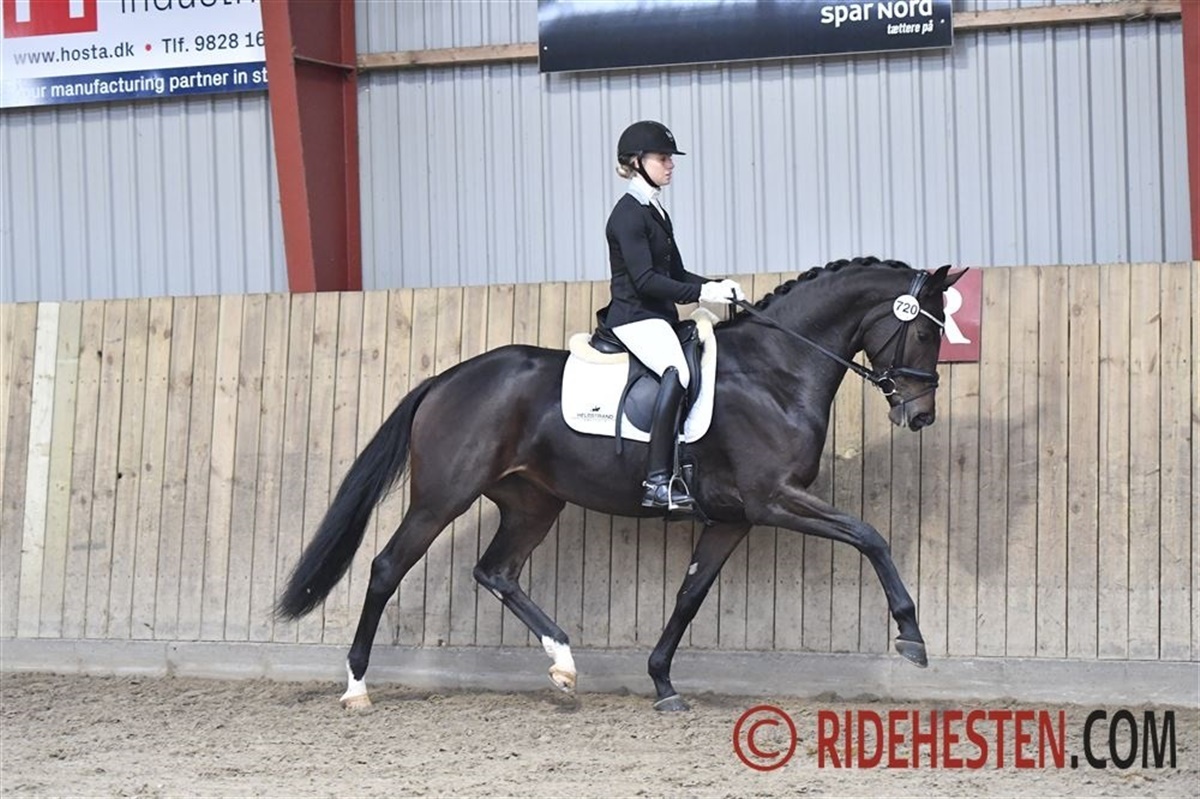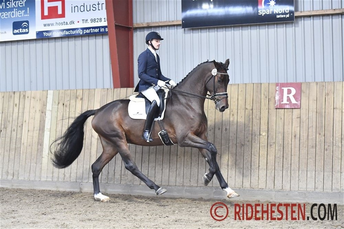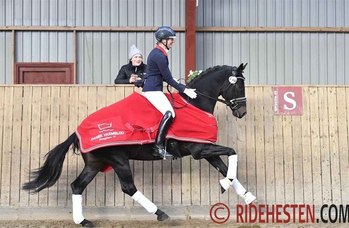 Hannes Lüth red Ziva Enshøj e. Blue Hors Zack/Uno Don Diego (opdr. Klaus Fogh) ejer Helgstrand Dressage ind på 5. pladsen med 840 points - parret opnåede 8,5 points for den letgående trav med aktive bagben, samme karakter udløste skridt, ridelighed og kapacitet, mens det blev til 8 for galoppen, som dommerne gerne havde set mere rummelig i øgningerne.