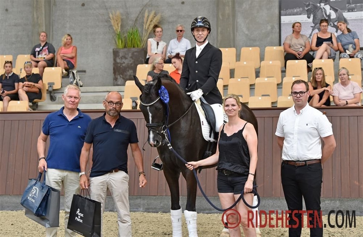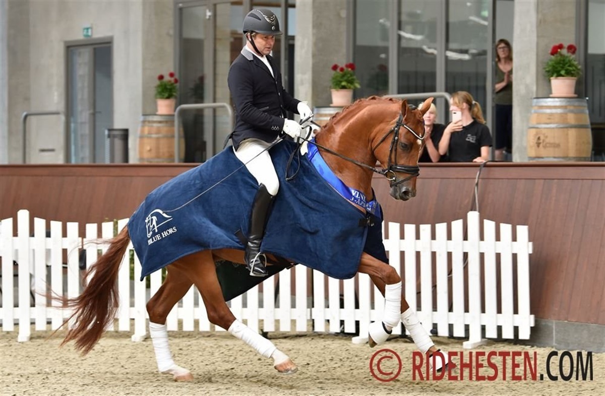 Det blev til en suveræn sejr i 3-års holdet med 9,2 point for Højgaardens Zacksmir e. Blue Hors Zack/ Sir Donnerhall I, der er opdrættet og ejet af Stutteri Højgaardens Heste. Dommerne var vilde med den røde vallak, som de belønnede med bl.a. 9,5 i både trav og potentiale og et flot 10-tal for galop.
