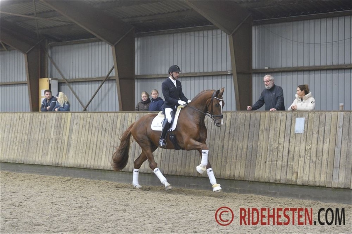 Triumph Villa e. Vitalis/Blue Hors Zack (opdr. Triumph Dressage) fra Helgstrand Dressage blev redet af Michael Grønne Christensen til en tredjeplads med 870,00 point. Vallakken fik 9,5 for galop, 9 for kapacitet, 8,5 i trav og ridelighed og 8 i skridt.