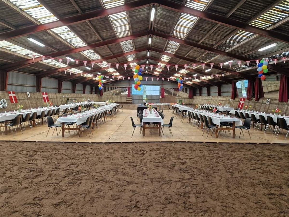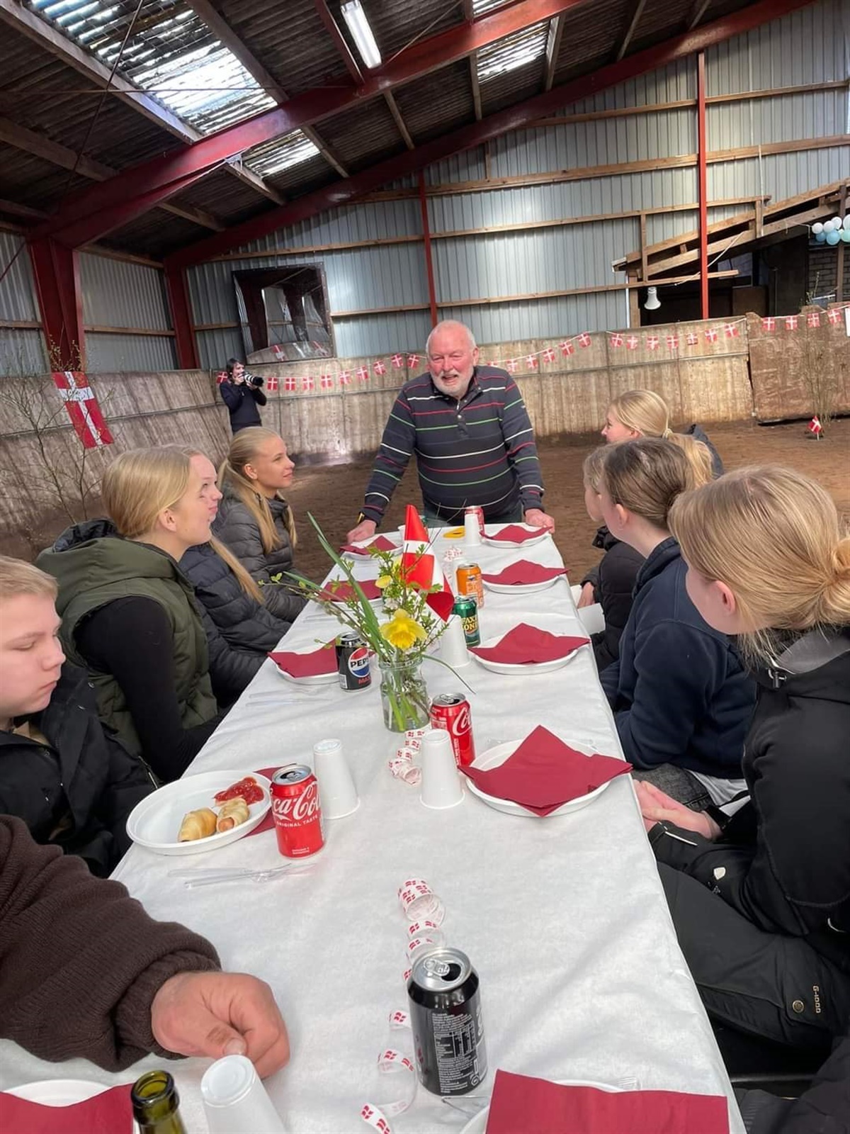 Der var dækket op til fest i ridehallen og gjort klar til masser af underholdning – men Finn vidste selvfølgelig ingenting om arrangementet.