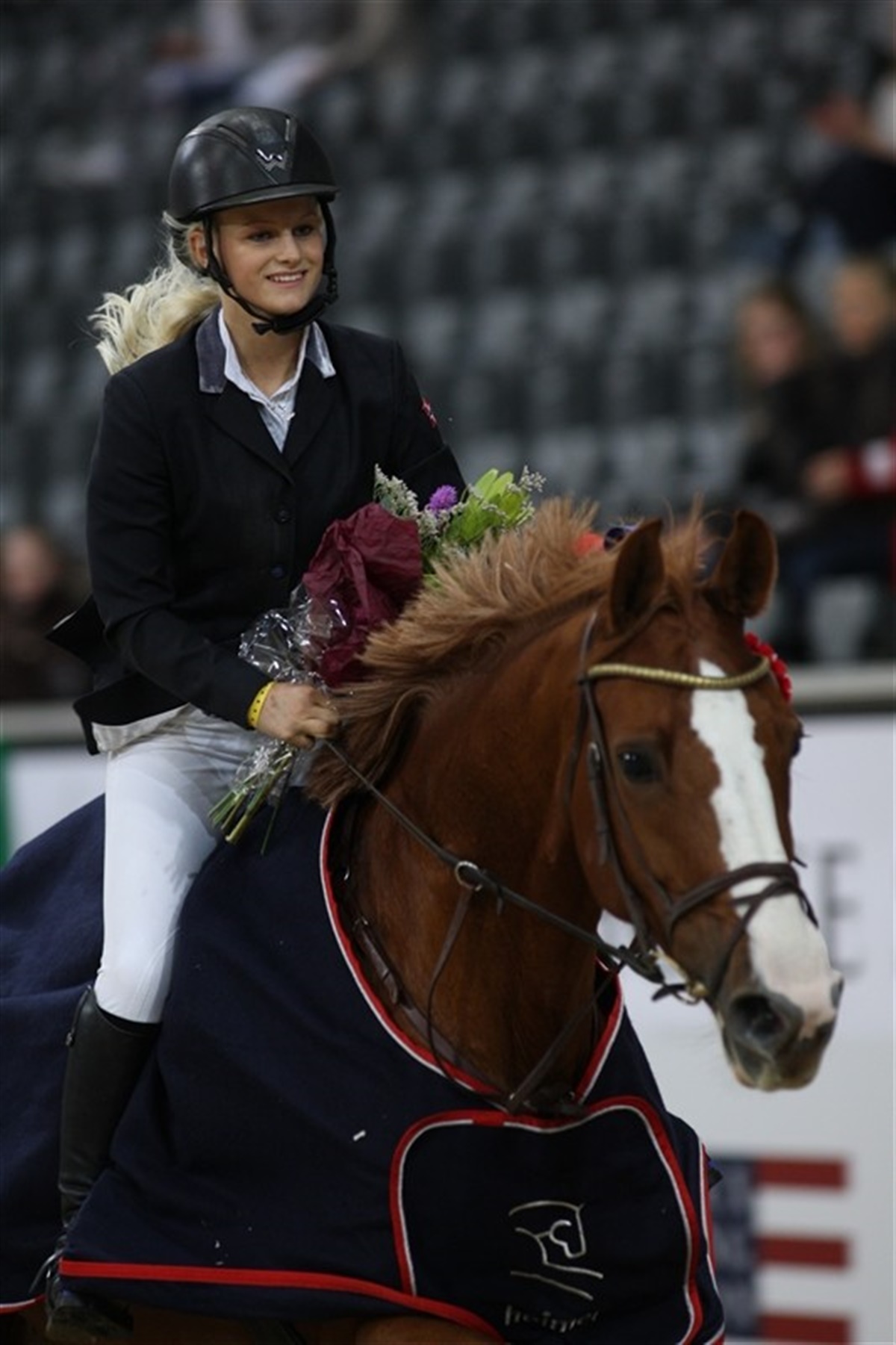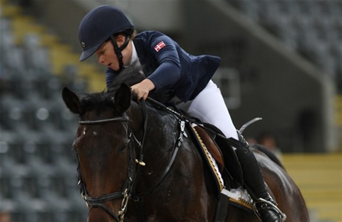 Der var en god stemning i den danske lejr, da 16-årige Julie med den lige så gamle hest Leslei red en fejlfri hovedrunde i Grand Prixen på 140 cm i Hestesports Cuppen for junior/ungryttere. Bare 6 ryttere var fejlfrie i hovedrunden, og i omspringningen blev det til 4 fejl til Julie og Leslei e. Lenoid, hvilket rakte til en flot 5. plads. Julie Paludan Sørensen er en travl dame i øjeblikket, da hun ikke alene rider på hest, men også kat. II og I ponyer. I øjeblikket ligger Julie som nr. 1 i Baltic Cuppen med hesten Leslei og for 2'er ponyer ligger hun nr. 2 på Kantje's Valentjin. Julie udtalte efter klassen: - Det var en teknisk svær bane i dag, springene står tæt og de kommer meget hurtigt ud af hjørnerne. Og så er der rigtig meget for hestene at kigge på i den store hal, siger Julie og fortsætter: Jeg har redet Leslei i snart 2 år nu og han er en god læremester, men jeg har bare haft en god sæson med alle hestene. Grand Prixen blev vundet af norske Bibbi Emilie Duus med Selerno.