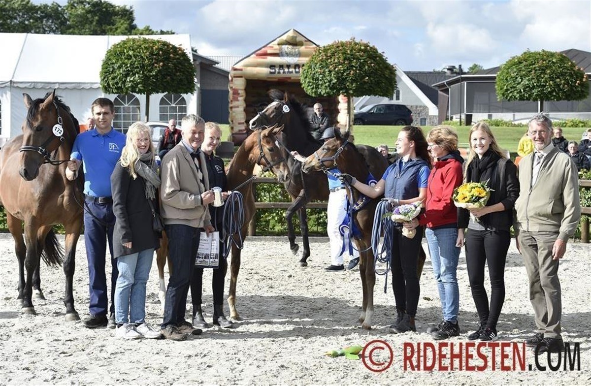 - Petersmindes Doncaster e. Blue Hors Don Olymbrio/ Bøgegårdens Laurino/ Bøgegårdens Lantano. Opdrætter: Lene Hell & Søren Jensen