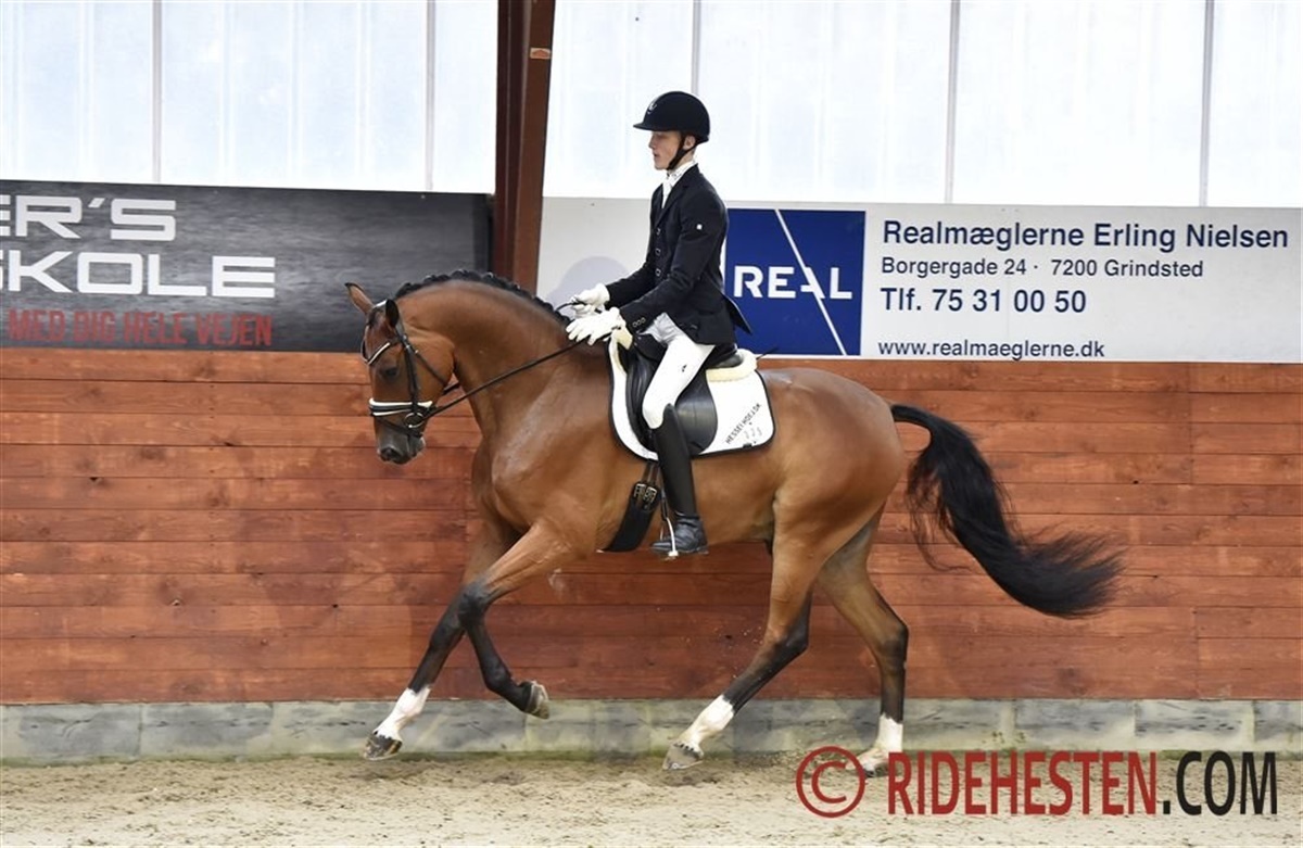 – Highgive Fuglsang har jeg i ridning for familien Dahlseng fra Norge. Han blev nr. 2 i finalen for 4-års heste sidste år og jeg er utrolig glad for dette samarbejde. Vividus Qre har jeg i ridning for Tina og Christian Storm, som har indkøbt ham som juniorhest til deres datter. Indtil hun skal overtage ham har jeg fået æren af at uddanne ham.