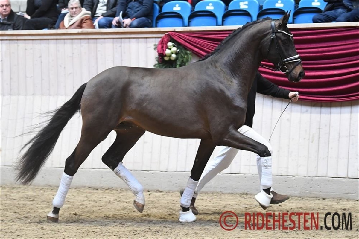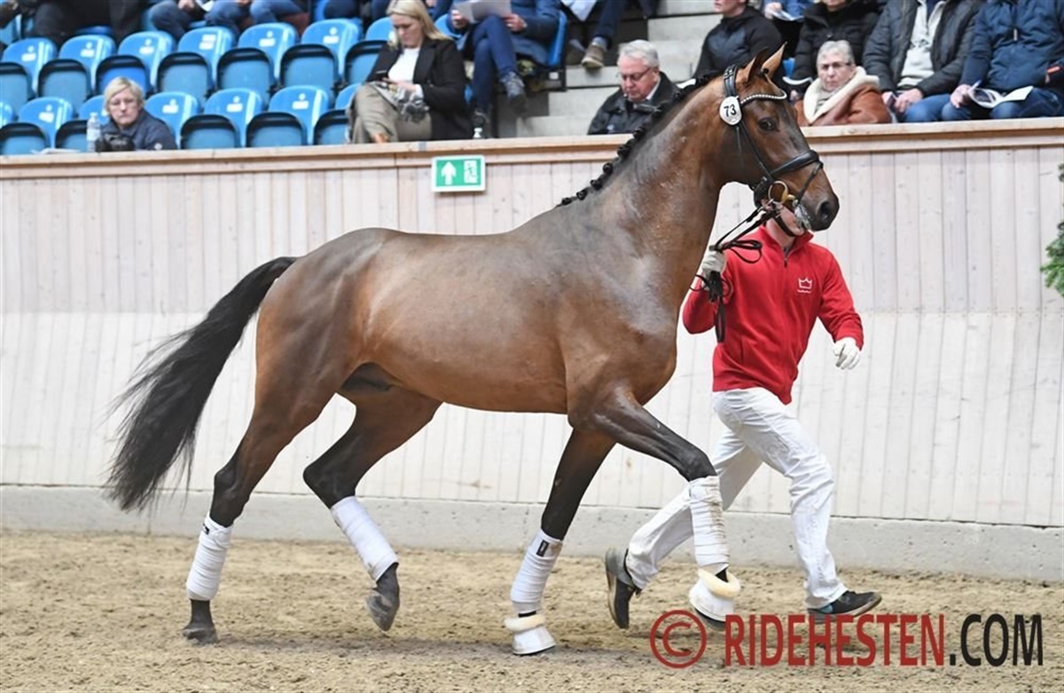 Dommerne udvalgte en flok til fast bund og longering, hvorefter det resulterede i 17 udtagne hingste, og blandt dem er intet mindre end fem sønner af Revolution, der netop stiller sin første årgang. Blandt de importerede hingste bemærker den efteranmeldte hingst sig som værende helbror til den kendte beskeler Vitalis.