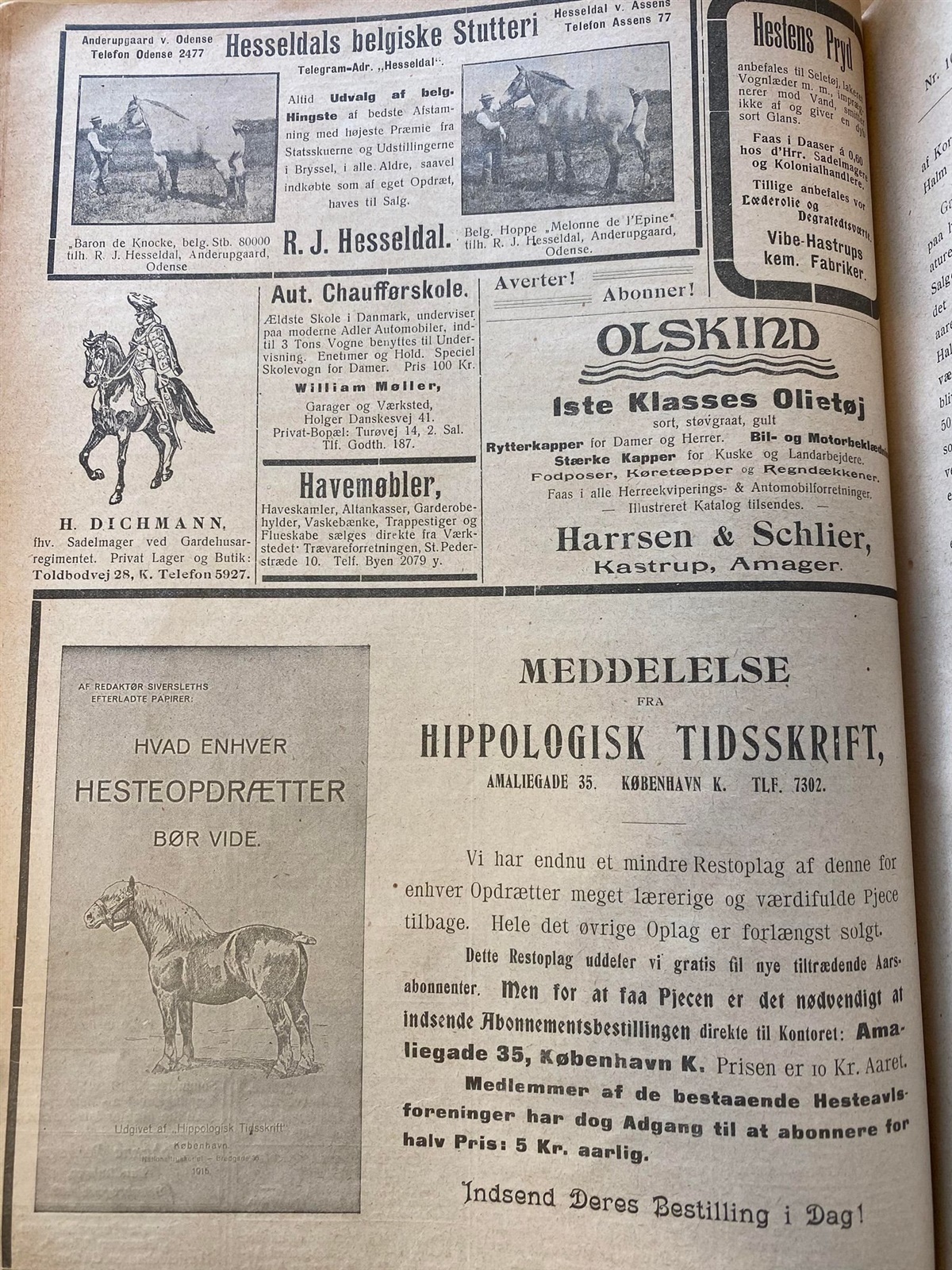 I 1918 var der for alvor kommet gang i annonceringen i Hippologisk Tidsskrift. Annoncerne blev indrykket af alt fra skrædderier, der syede ridetøj, til damer, der tilbød lektioner i klaverspil. Annoncerne blev i øvrigt modtaget af Anna Siversleth og hendes efternavn lyder uden tvivl bekendt for enhver, der følger vores lille hippologiske tidslinje. Udover at modtage annoncer oversatte hun i øvrigt kortromanen En Hest af Leo Tolstoy fra fransk til dansk efter aftale med forfatteren. Bogen er oprindeligt skrevet på russisk så der var tale om en oversættelse af en oversættelse.
