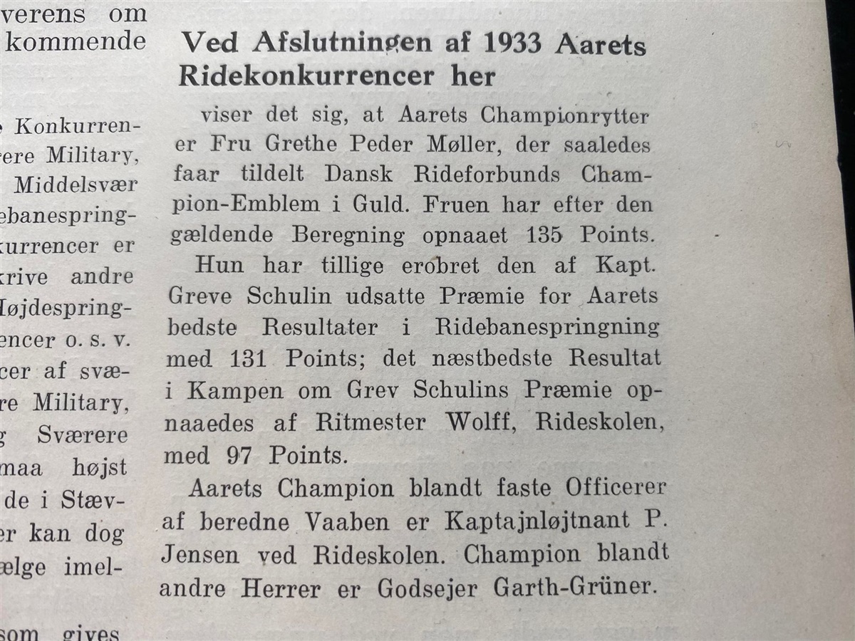 Ridesporten var for alvor kommet i gang. Det Nordiske Rytterstævne i København var så velbesøgt, at man ganske enkelt var nødt til at begrænse antallet af deltagere. Der blev afviklet sværere military, sværere skoleridning og sværere ridebanespringning.